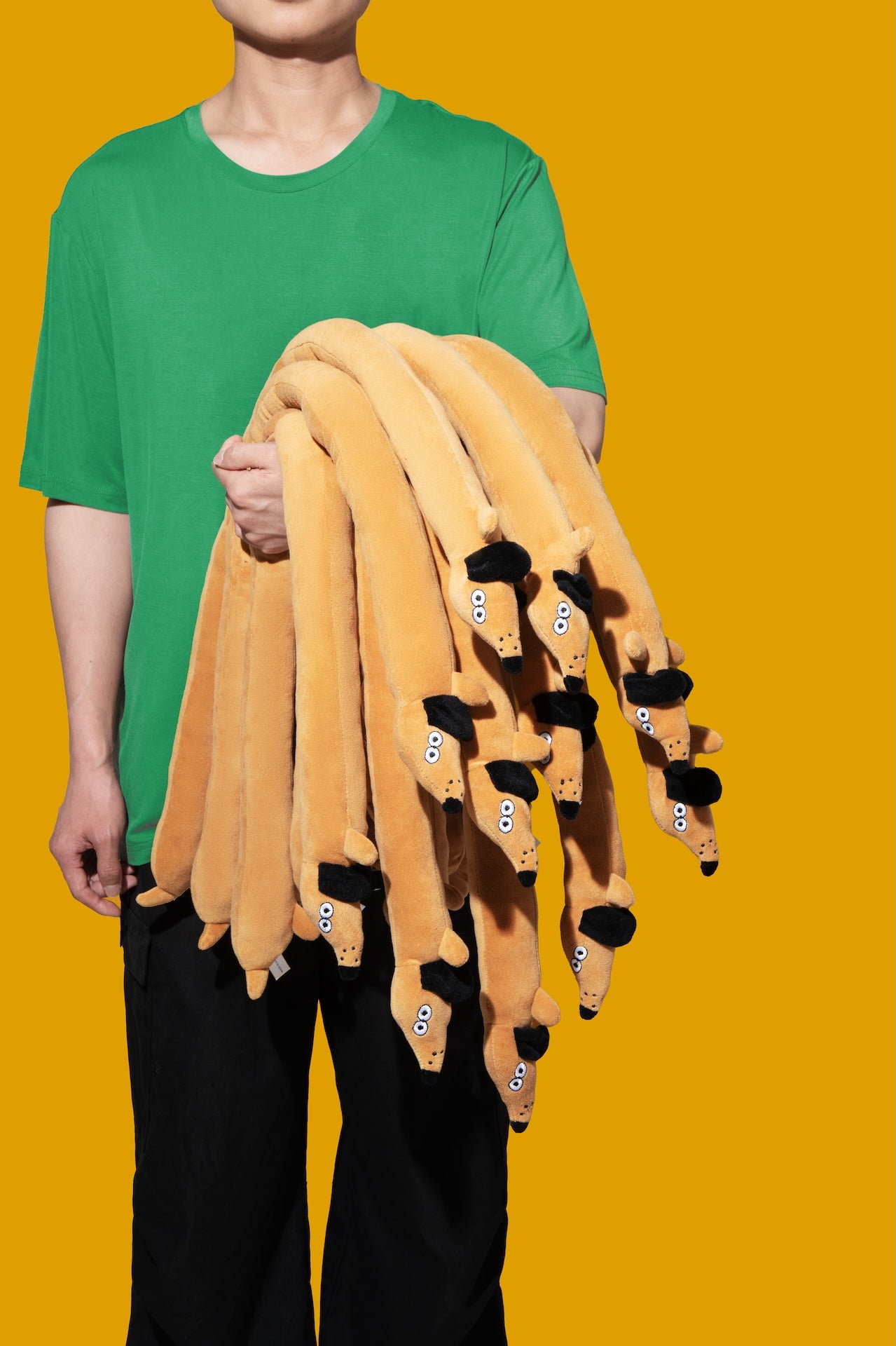 LE SAUSAGE PUP is a delightfully long, sausage-shaped companion made for playful pups. Soft, plush, and wonderfully flexible, it can be rolled into a cosy bundle or stretched out for dragging, shaking, and interactive fun.